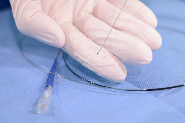 まず、局所麻酔を刺入動脈の周囲に行い、カテーテルもしくは針を動脈内に挿入し、抗生物質でできた粒子を投与します。